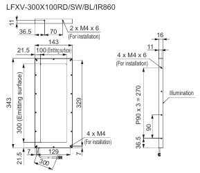 - This Light Unit emits blue light and measures 143 x 343 x 16 mm (width x depth x height).