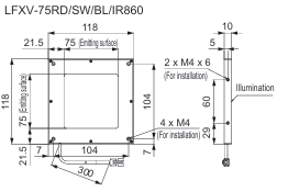 - The light-emitting surface measures 75 x 75 mm.