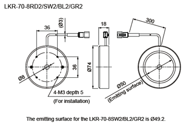 - This Light Unit emits green light and has an outer diameter of 74 mm, an inner diameter of 8 mm, a height of 18 mm, and a light-emitting surface diameter of 49.2 mm.