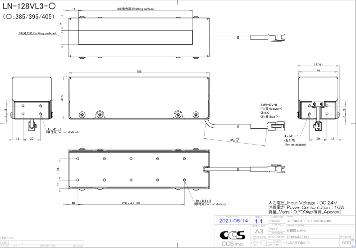 | Input connector | SMR-03V-B |