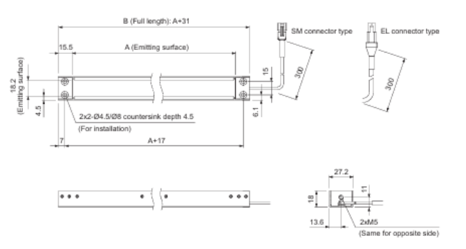 • This Light Unit emits white light and measures 634 x 27.2 x 18 mm (width x depth x height).