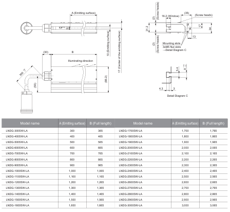 • The light-emitting surface measures 1,800 x 10 mm.