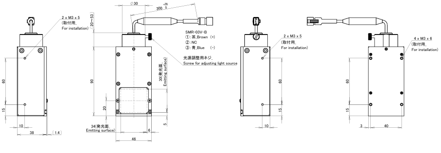 | Accessories | Aperture (φ0.5 mm) x 1, Aperture (φ1.0 mm) x 1, Aperture (φ2.0 mm) x 1, Set of screws (M2 x 2 mm black) x 3, M2 hexagonal wrench x 1 *An aperture (φ1.0 mm) is attached to the light source part when shipped from the factory. *Replacing with one of the additional apertures supplied (φ0.5 mm and φ2.0 mm) allows the light quantity (high / low) and light distribution (wide / narrow) to be changed. |
