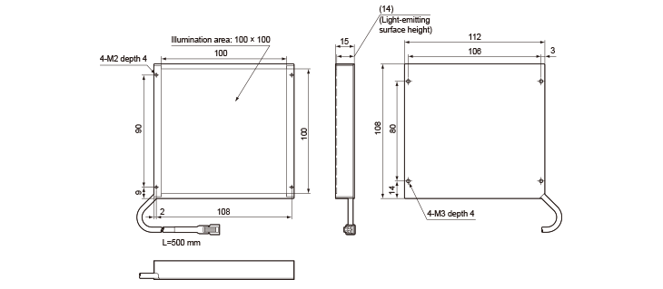 • This Light Unit emits blue light and measures 112 x 108 x 15 mm (width x depth x height).