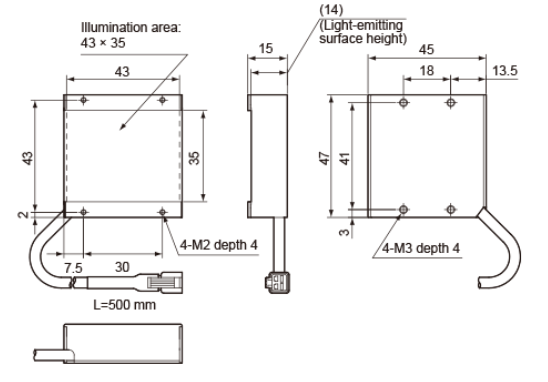 - This Light Unit emits red light and measures 45 x 47 x 15 mm (width x depth x height).