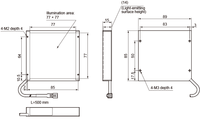 - This Light Unit emits blue light and measures 89 x 85 x 15 mm (width x depth x height).