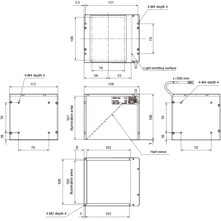 - This Light Unit emits blue light and measures 128 x 112 x 107 mm.