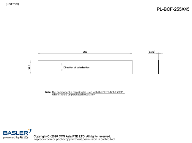 - PL-BCF-255X45 is a Polarizing Plates for BCF Series (Flood Light) series “BCF-255X45x”.