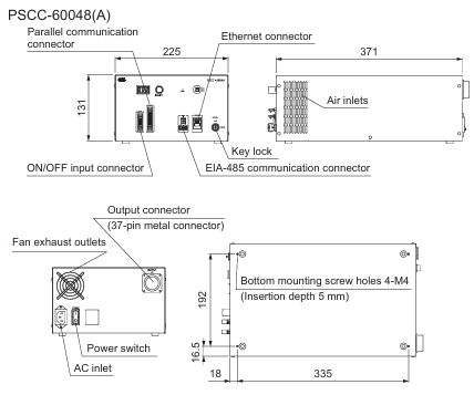 - Ethernet, EIA-485 and Parallel communications protocols are all supported for external control. It operates on a 100 to 240 VAC input and measures 225 x 371 x 131 mm (width x depth x height).