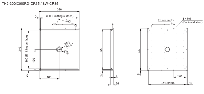 - This Light Unit emits white light and measures 320 x 340 x 25 mm (width x depth x height).