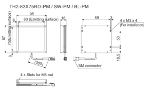• The light-emitting surface measures 83 x 75 mm.