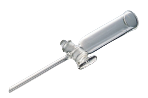 • The cylindrical funnel is equipped with a cock.
