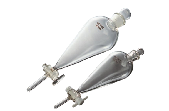 - VIDTEC® conical separatory funnels are slightly larger than the JIS standard dimensions. They are very popular because they can shake solutions up to the capacity.