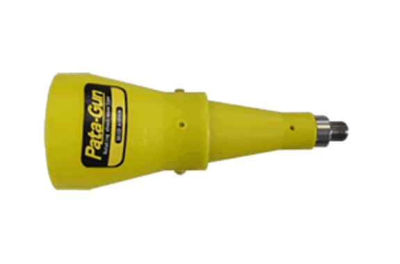 The soft urethane fluid injection outlet protruding from the back of the cover rotates at high speed, causing intermittent shock waves to spread over a wide area. Compared to the pushing effect of conventional air guns, the Pata Gun’s air hitting effect reduces air consumption and shortens processing time.