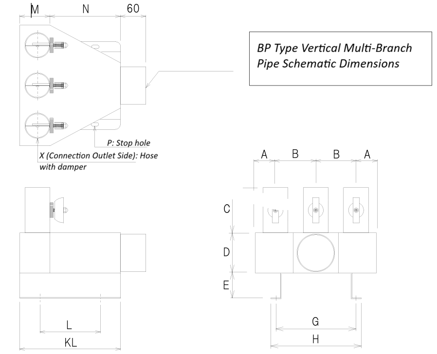 | X (Number of Branches) | E | G | H | L | KL | N | N (Stop Hole) |