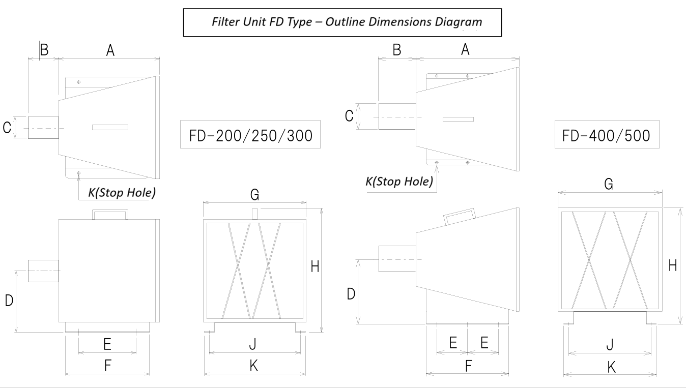 | FD-250 | 250 | 157 | 140 | 200 | 255 | 317 | 220 | 250 | 4-Φ8.5 | 3.8m3/min. |