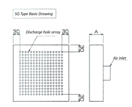 • It is a surface (sheet) jet nozzle in which many small-diameter outlet holes are arranged in rows at equal intervals on the discharge surface.
