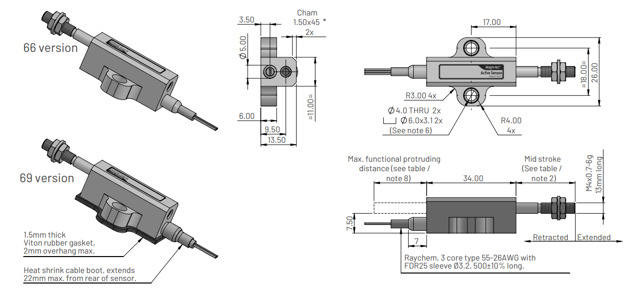 ■ Dimensions for MHL1211 – Free shaft, 5mm to 40mm measurement range
