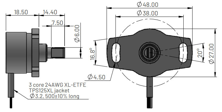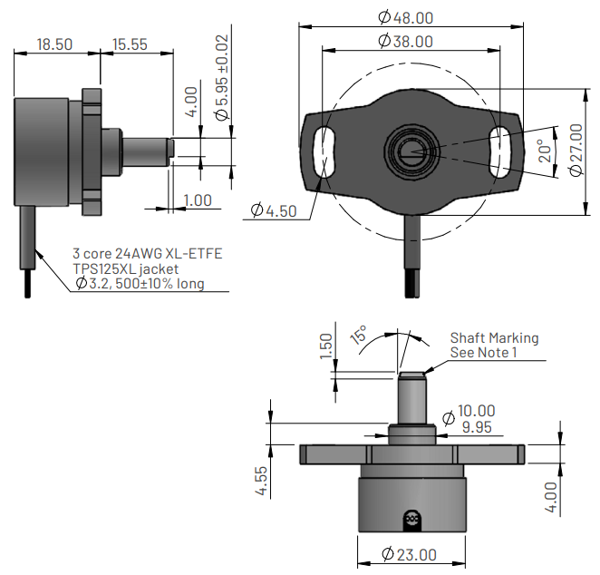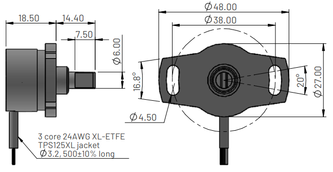 ■ Dimensions for RP5120 – Flange mounting – round shaft
