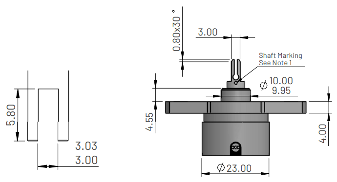 ■ Dimensions for RP5110 – Flange mounting – sprung shaft