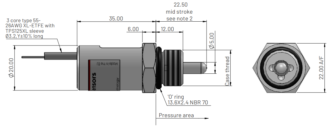 ■ Dimensions for VHL2003-AB-XX-Y-ZZZ – Hexagon case with a sprung loaded shaft