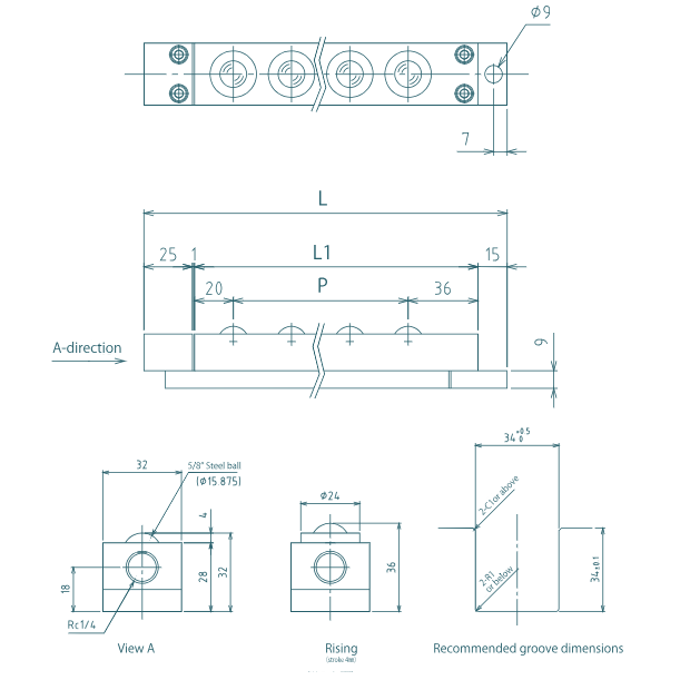 By processing a square groove on the machine bed at the time of mounting, it is possible to convey and position jigs, molds and workpieces.