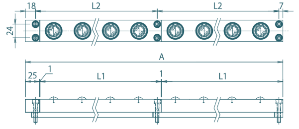 - Calculation formula of full length A=25+(Sum of L1)+(Number of connections)