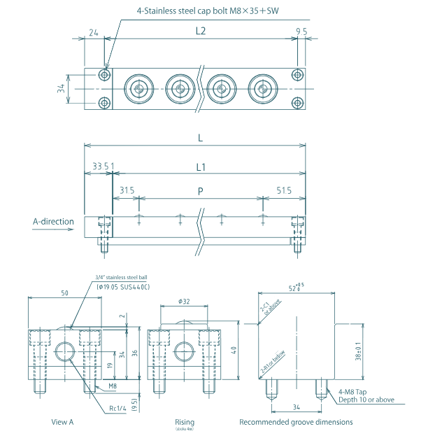 By processing a square groove on the machine bed at the time of mounting, it is possible to convey and position jigs, molds and workpieces.