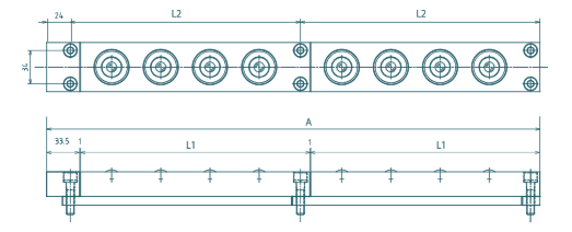 Calculation formula of full length A=33.5+(Sum of L1)+(Number of connections)