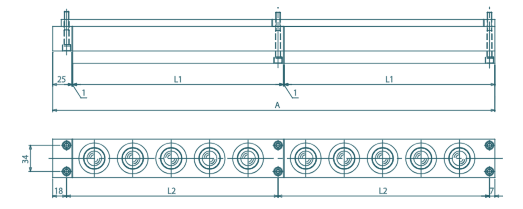 Calculation formula of full length A=25+(Sum of L1)+(Number of connections)