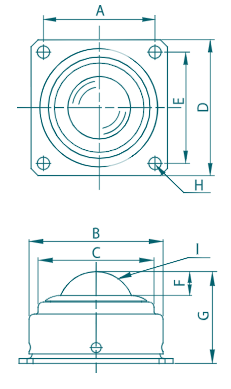Model | Allowable load | Max. load | Main ball | Small ball | Body | Weight | A | B | C | D | E | F | G | H | I |