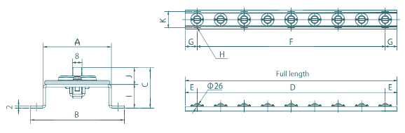 RU-RC30-900 | 100Pitch×8=800 | 700 | 4-∅5.5 | 900 | RC-30(9: Qty.) | 2.1kg | ||||||||