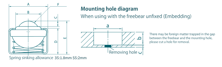 ModelAllowable loadMounting strengthMax. strengthMain ballSmall ballBodyWeightABCDEF