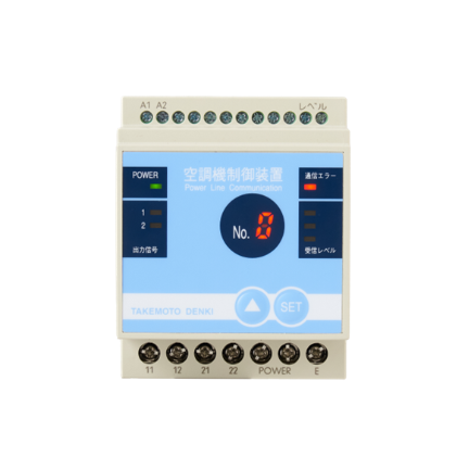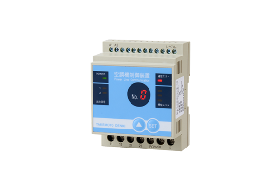 The air conditioner control unit/parent unit receives an alarm from the demand monitoring device as a contact signal via power line communication from the parent unit.
