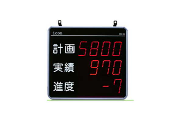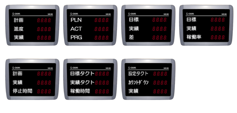 | Display Data | Select one type for each stage from 53 types of display data (user can change settings) Plan number / Target number / Actual number / Progress / Operating rate / Achievement rate / Number of stops / Stop time (hours: minutes) / Operating time (hours: minutes) / Actual takt / Average takt / Average takt of the past 10 times / Current time / Remaining number 1 / Remaining number 2 / Time progress / Reverse prescale count / Takt countdown / SPM / SPH / Current lot No. / Set takt / Time operating rate / Actual takt countup / Stop time (minutes: seconds) / Operating time (minutes: seconds) / Number of stops (2) Number/Stops (2) Time (Hours: Minutes)/Stops (2) Time (Minutes: Seconds)/Cumulative Plan Number/ Cumulative Target Number/Cumulative Actual Number/Cumulative Progress/Cumulative Operating Rate/Cumulative Achievement Rate/Cumulative Stops/ Cumulative Stop Time (Hours: Minutes)/Cumulative Stops (2) Number/Cumulative Stops (2) Time (Hours: Minutes)/ Direct Cumulative Plan Number/Direct Cumulative Actual Number/Direct Cumulative Progress/Direct Cumulative Operating Rate/Direct Cumulative Achievement Rate /Direct Cumulative Stops/Direct Cumulative Stop Time (Hours: Minutes)/Direct Cumulative Stops (2) Number/ Direct Cumulative Stops (2) Time (Hours: Minutes)/Time Progress (Minutes)/Cumulative Time Progress (Minutes)/Direct Cumulative Time Progress (Minutes) | |||||
