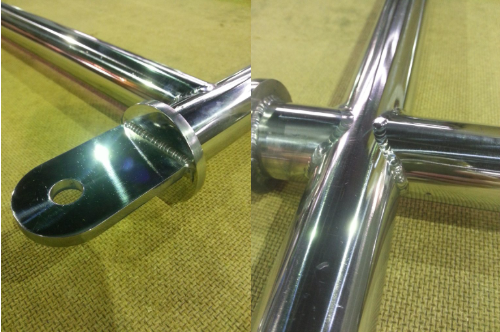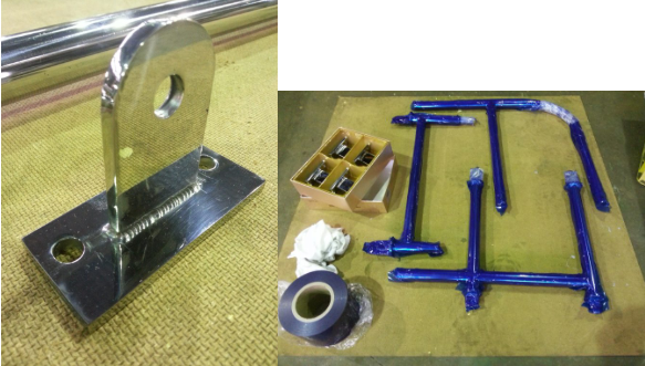 - The pipes themselves are polished pipes, while the metal fittings attached to the handrail—such as the eye plates—are finished with 2B welded surfaces.
