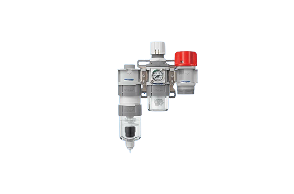 It has combined the water separator “IB-Cyclone” using the high-speed cyclone method and the downsized filter regulator “FRZ Series”.