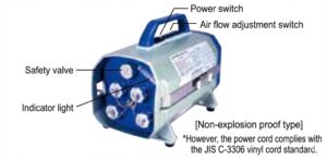 Supplies sufficient air from a small blower. Can be used if a 100V AC power source is available.