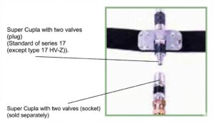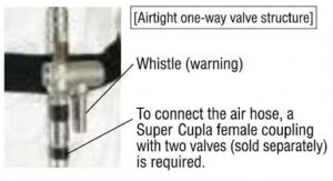 The connection part of the medium-pressure air hose uses “Super Coupler” with a check valve structure (both plug and socket ends have backflow prevention structures) and is equipped with a locking mechanism. This is a safety design that prevents ingress of dirt, etc., from the coupler unit even when the hose is disconnected.