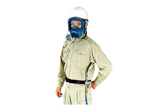 A supplied-air respirator (airline mask) is a system of respiratory protective equipment that supplies clean air to the wearer through a hose. There are types that use an air compressor or blower as an air source, and there are also types that rely on the wearer’s own lung suction power. By correctly selecting the appropriate type from various supplied-air respirators, the equipment can be used in: