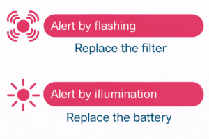 - Pressure drop warning via “Flashing LED”: ➔ Replace the filter.