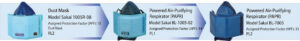 • Recommended masks for each required protection factor, etc.