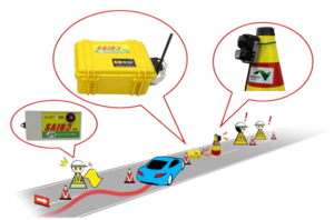 - This device monitors the movement of surrounding vehicles on highways to protect construction workers from passing vehicles and alerts them to danger.