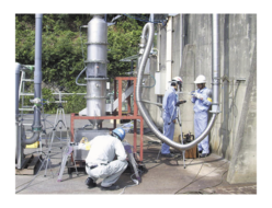 This equipment removes and recovers ammonia from wastewater, thereby satisfying nitrogen regulations and recovering valuable ammonia.