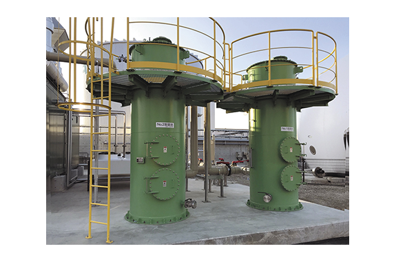 MIURA optimally designs each dry desulfurization system to match specific customer needs, and we carefully consider factors such as gas volume, hydrogen sulfide concentration, desulfurization agent replacement cycle, and available installation space. We can also handle the design and manufacture of ancillary maintenance stands and hoisting equipment, as well as the operation of desulfurization agent injection.