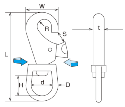 • It is an outward opening type. As a connecting bracket such as chain, wire, rope, etc., and as a joint of terminal fittings. For chains, etc.