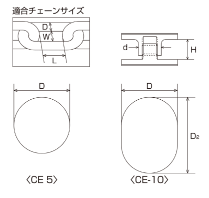 | CE-10YL | Yellow | Stainless Chain 8-B-9-B-10-A ※ | 8~10 | 12~15 | 18~22 | 11.5 | 18 | 26 | 8~10 | 2 | 220 | 200 | 50 |