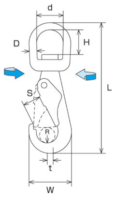 | Product No. | D | L | W | S | R | H | d | t | Weight (g) | Reference Load (kgf) | Reference Load (kN) |
