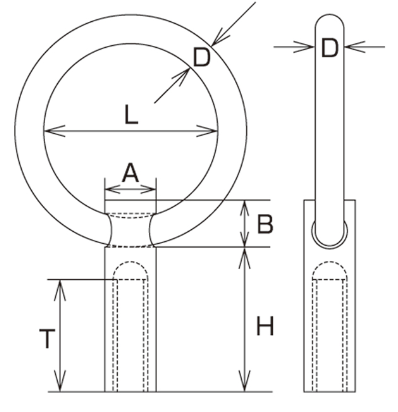 | Item Number | D | L | H | A | B | Thread | Weight (g) | Reference Weight (kgf) | Reference Weight (kN) |