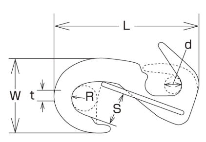 | Product No. | L | W | S | R | d | t | Weight (g) | Reference Load (kgf) | Reference Load (kN) |